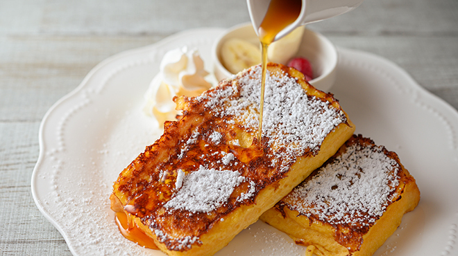 弾力のある白身が有名な「のだのたまご」を使用。ひと晩卵液につけたパンを注文をうけてからじっくり焼き上げる、ふわふわ濃厚な当店だけのフレンチトーストです。